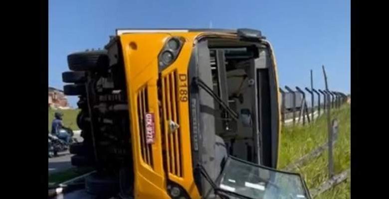 Ônibus do transporte complementar de Salvador capota na Avenida 29 de Março